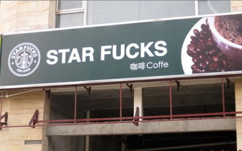 仿星巴克的山寨咖啡館,名稱叫「STAR FUCKS」