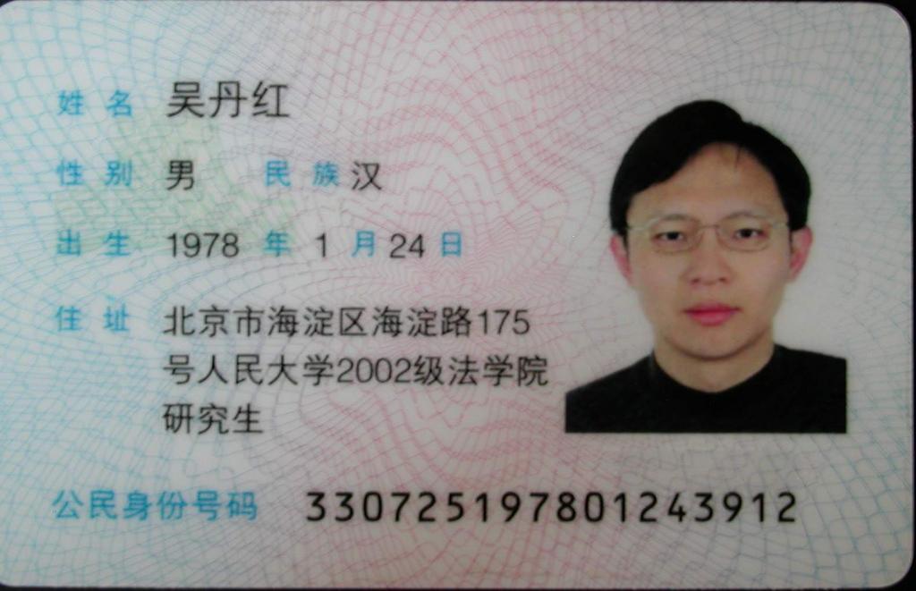 吴丹红,男,汉族,住址: 北京市海淀区海淀路175号人民大学2002级法学院研究生,公民身份证号码: 330725197801243912