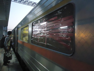 花莲到瑞穗的312号自强火车有块玻璃被击穿