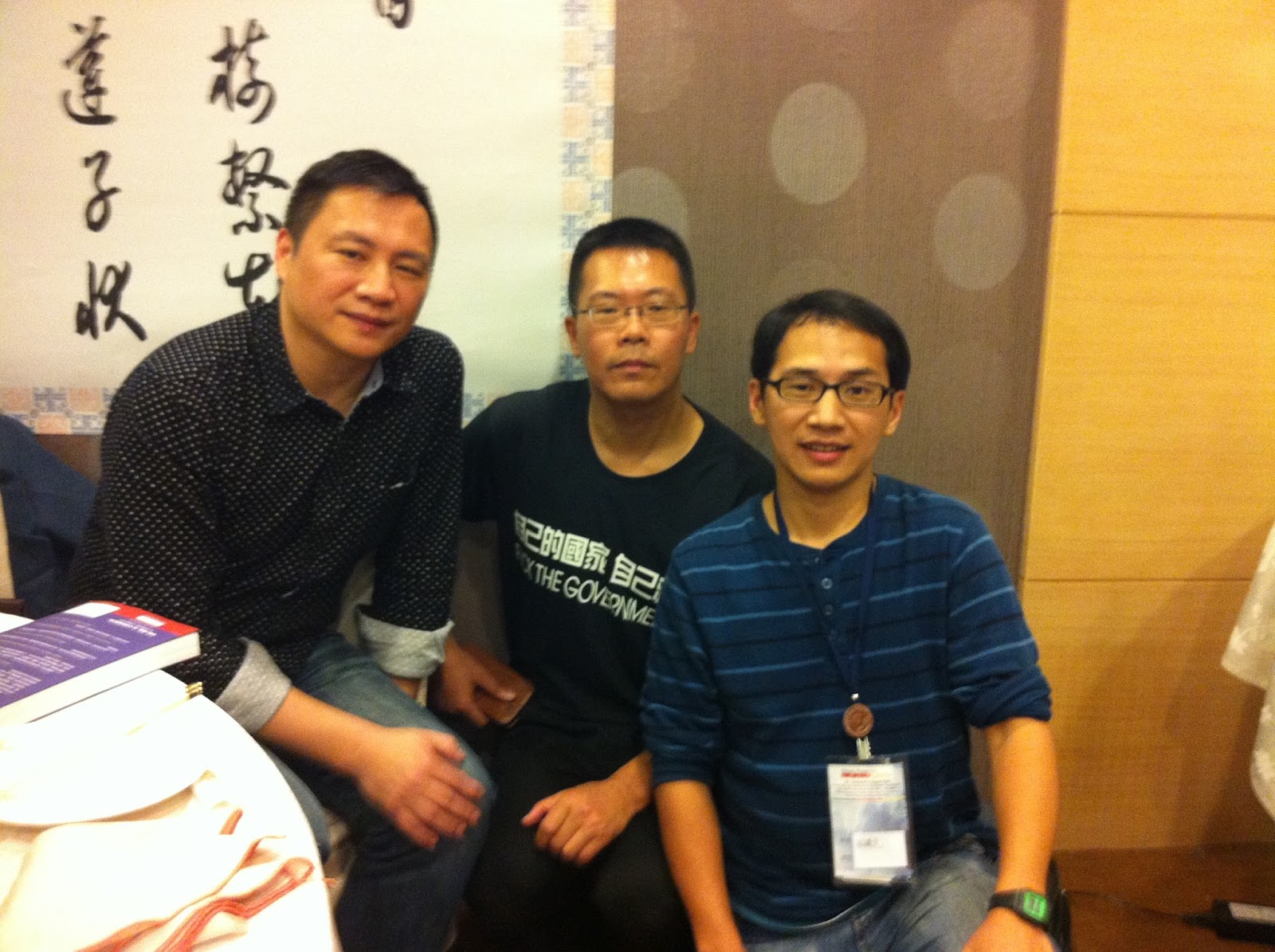 凑过去跟王丹、滕彪两位博士合影一张,我可是只有初中毕了业的人啊,能跟他们合上影我得花上33年的功夫啊。