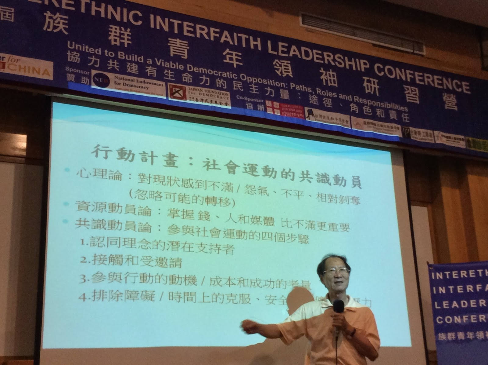 由总部设在美国华盛顿的公民力量主办的第九届国际族群青年领袖研习营于4月24日至27日在台湾台北剑潭青年活动中心举行。来自世界各地的藏族、维吾尔族、蒙古族、汉族及不同宗教团体,包括基督教、佛教、法轮功等领袖和人权活动人士近百人将出席会议.我有幸被公民力量邀请并参加了 第九届国际族群青年领袖研习营,英文是 9th Interethnic interfaith leadership conference,副标题是“协力共建有生命力的民主力量,路径、角色和责任。去年我也参加过这个会议,与会者都是各民族的海外团体,也有来自国内的维权律师和社会活动人士。不同群体之间会产生碰撞与交流。