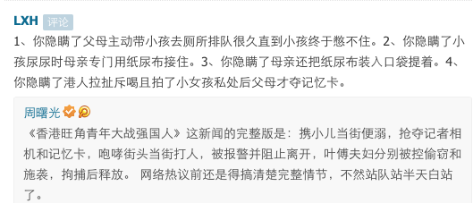 1、隐瞒了父母主动带小孩去厕所排队很久直到小孩终于憋不住的事实。2、隐瞒了小孩尿尿时母亲专门用纸尿布接住。3、隐瞒了母亲还把纸尿布装入行李袋提着。4、隐瞒了港人拉扯斥喝且拍了小女孩私处后父母才夺记忆卡