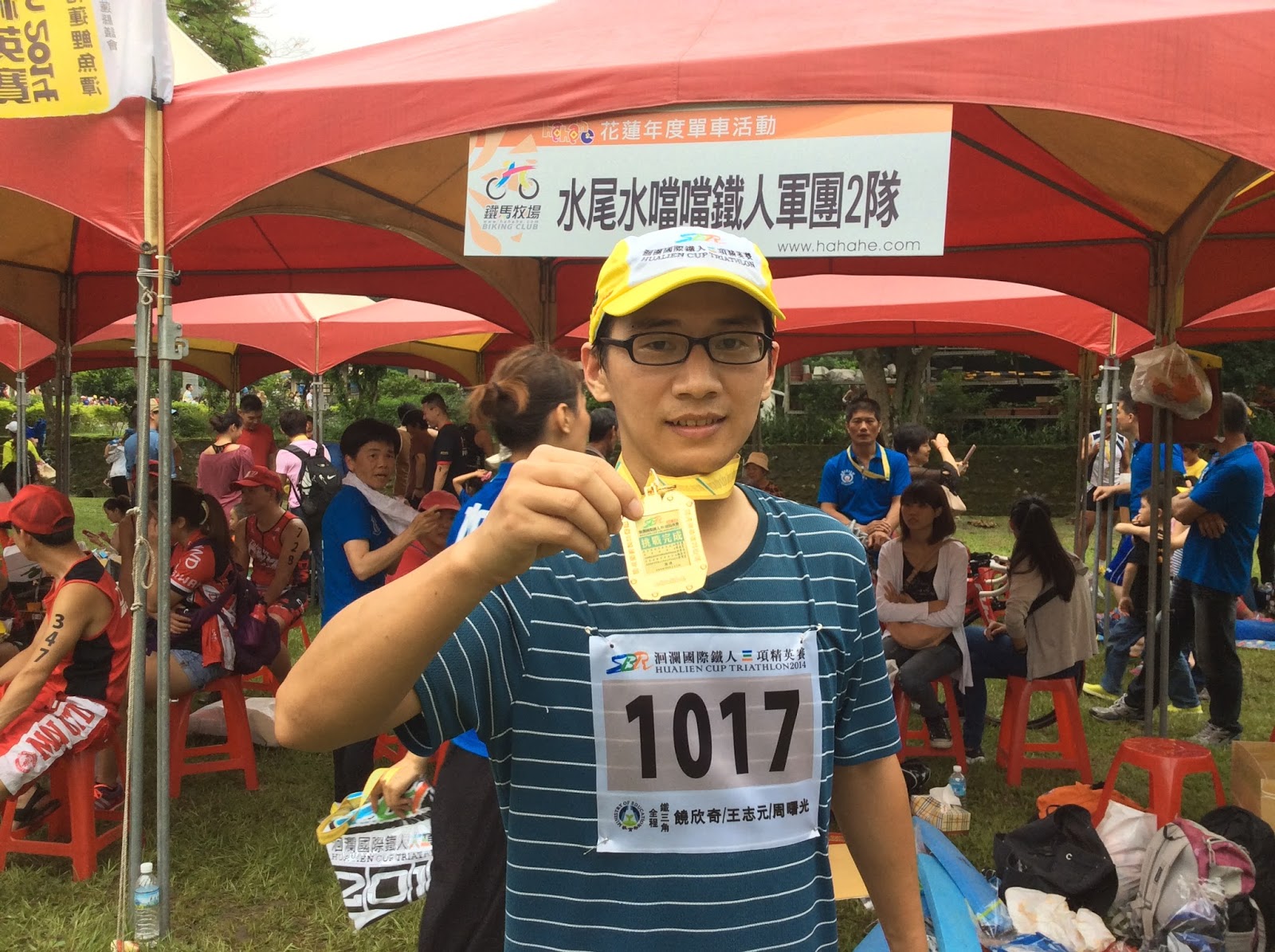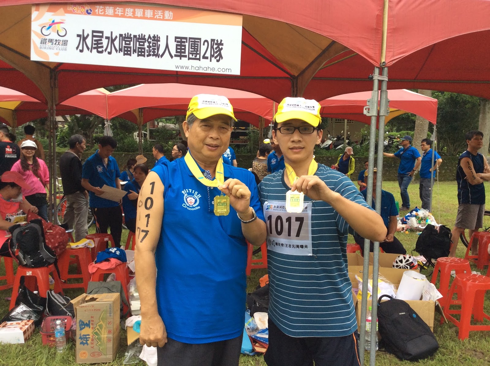 上面是我们水尾水噹噹鐵人軍團的合影,只是小部分人的合影,我们瑞穗(旧名水尾)有15支队伍,其中铁三角队伍有14个,个人铁人三项选手一个,共有43个人。可能是此次参赛中最庞大的一只军团:)