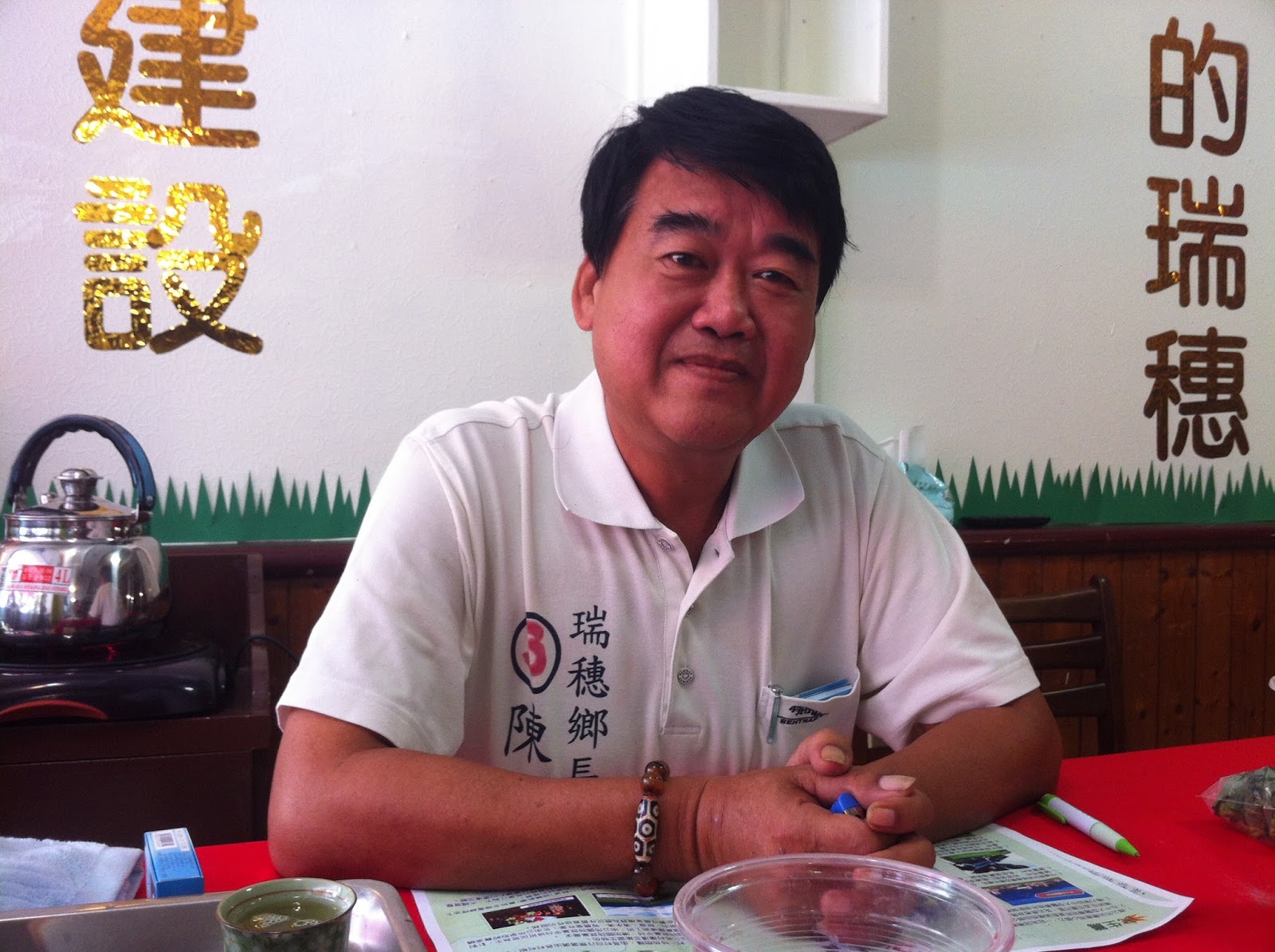 台湾从9月5号到11月29号是选举季节,根据《公職人員選舉罷免法》,为了节省选务经费,改为九合一选举。乡下选举是五合一选举了,也就是5个政府职位同时办选举活动,分别是县长、县议员、乡长、乡民代表、村长。最近有许多参加选举的人登门拜访,但我和太太在本地都没有选举权,我是大陆户口,太太是高雄户口,所以在花莲县瑞穗乡没有选举权和被选举权,我们都是通常接过对方的名片就告诉对方我们没选票,所以也没有多了解选举。但是,我是一个从一党专政的地方长大的,从没接触过选举,我决定挨个采访一下这些参选的人。