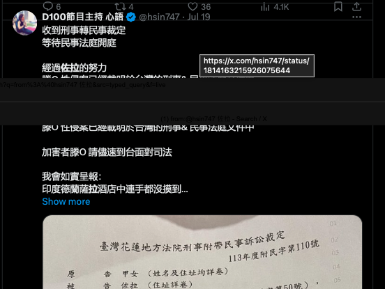 心語 X(Twitter)貼文(2025 年 7 月 19 日)